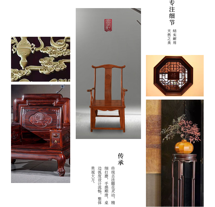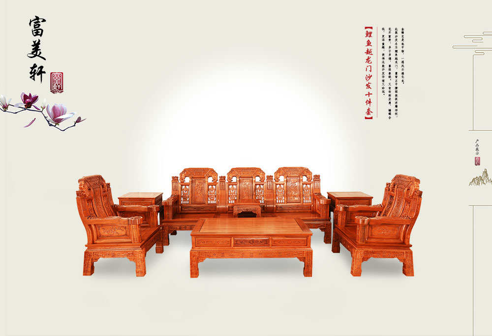 遼寧富美軒紅木家具制造有限公司是一家集研發設計和生產銷售各式紅木家具為一體的綜合性企業。富美軒以“管理高要求、生產高效率、技術高水平、產品高質量、營銷高服務”為宗旨,采取科學的管理模式、培育優秀的人才隊伍、增強研發和生產能力、建設高效的營銷網絡和提供優質的服務,形成了一套獨具特色的生產、管理和銷售模式...